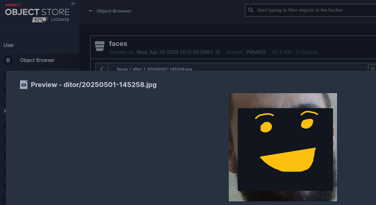 Registra uma imagem de uma pessoa e salva os metadados (como as posições das faces detectadas) no MinIO.